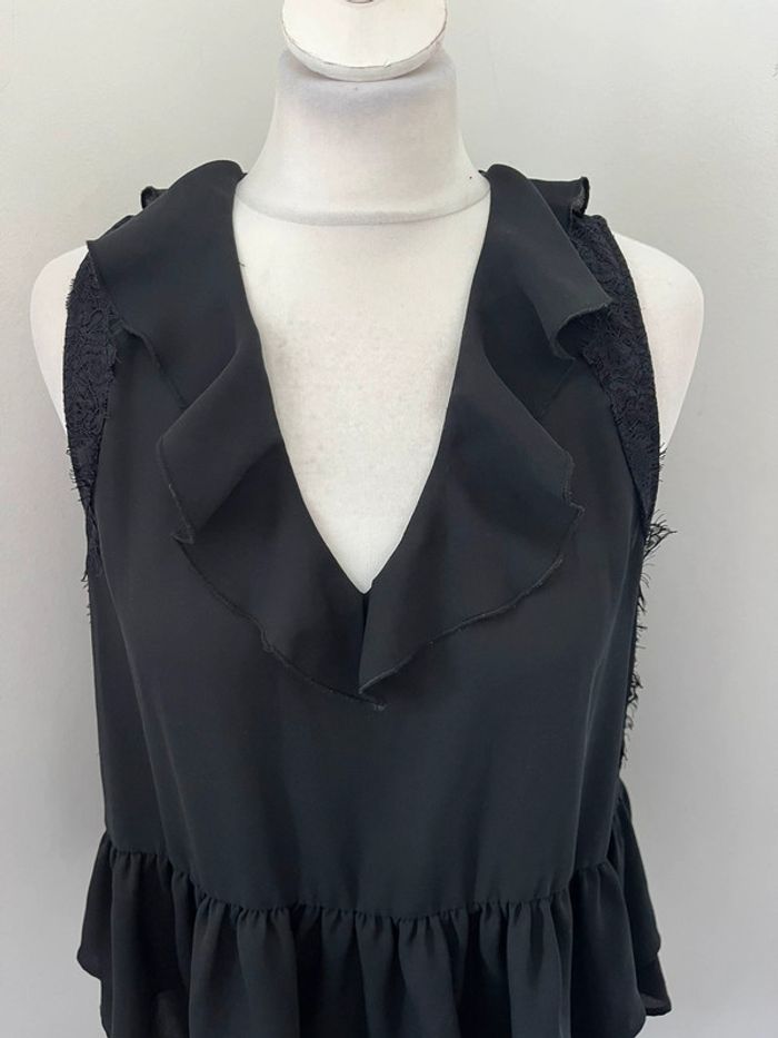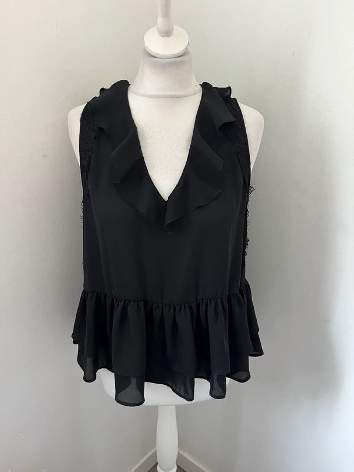Vends joli top débardeur Zara Noir Col V avec froufrou Dentelles sur les côtés Taille M #loumathifemmem #loumathizara #loumathiblouse 🌸 envoi rapide et soigné (Sous 48h ouvrées) 🌸 n’hésitez pas à faire un tour dans mon dressing pour voir mes autres pièces 🌸 étant pro, vous ne pouvez pas créer de lot 🌸 n’hésitez pas à vous abonner à mon compte Vinted car j’ajoute des articles régulièrement