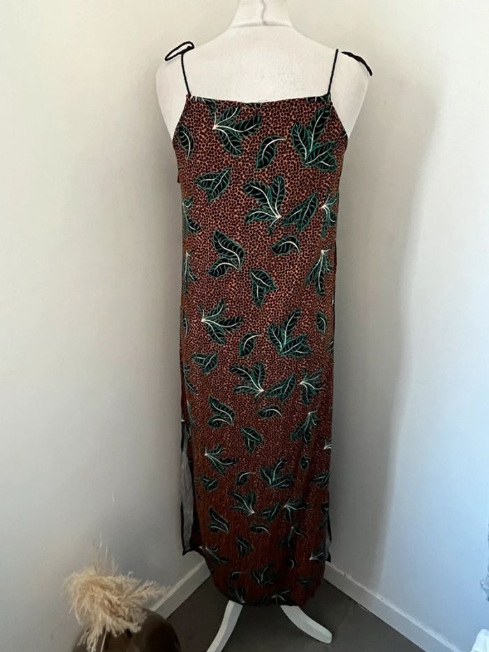 Vends jolie robe longue Camaïeu Marron à motifs vert Taille 38 #loumathirobe #loumathifemmem 🌸 envoi rapide et soigné (Sous 48h ouvrées) 🌸 n’hésitez pas à faire un tour dans mon dressing pour voir mes autres pièces 🌸 étant pro, vous ne pouvez pas créer de lot 🌸 n’hésitez pas à vous abonner à mon compte Vinted car j’ajoute des articles régulièrement