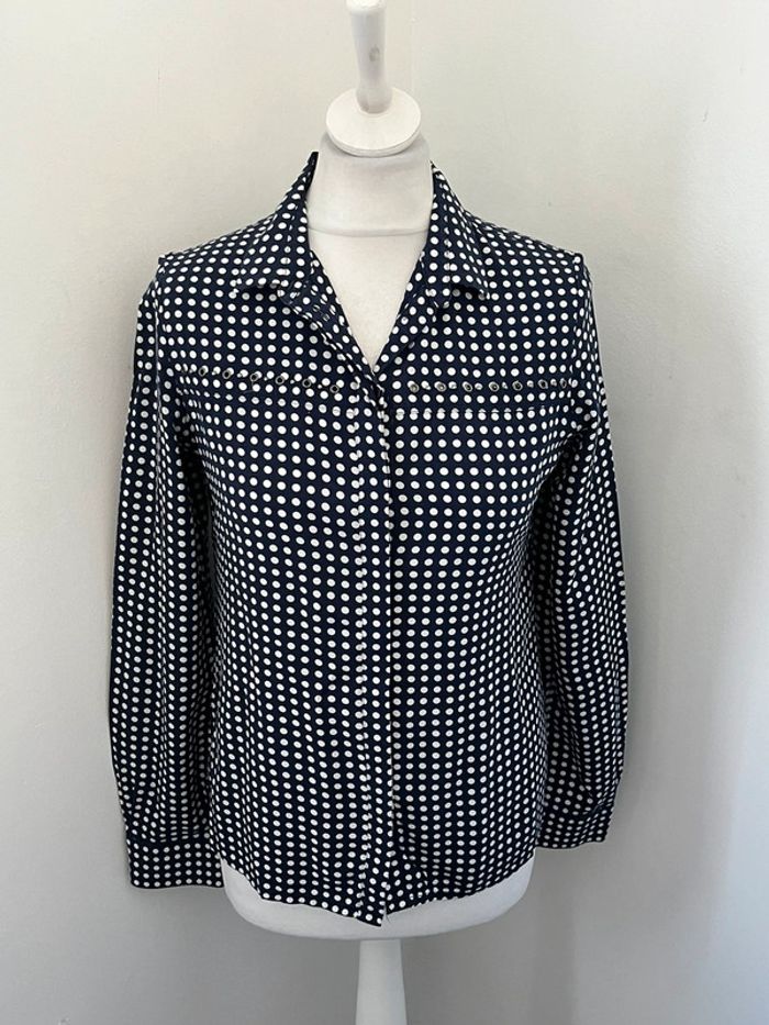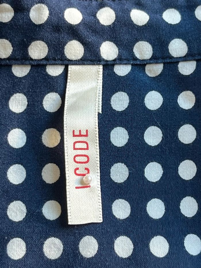Vends jolie chemise I code Marine à pois blancs Petits ronds métalliques en haut Taille S #loumathifemmes #loumathiicode #loumathiblouse 🌸 envoi rapide et soigné (Sous 48h ouvrées) 🌸 n’hésitez pas à faire un tour dans mon dressing pour voir mes autres pièces 🌸 étant pro, vous ne pouvez pas créer de lot 🌸 n’hésitez pas à vous abonner à mon compte Vinted car j’ajoute des articles régulièrement