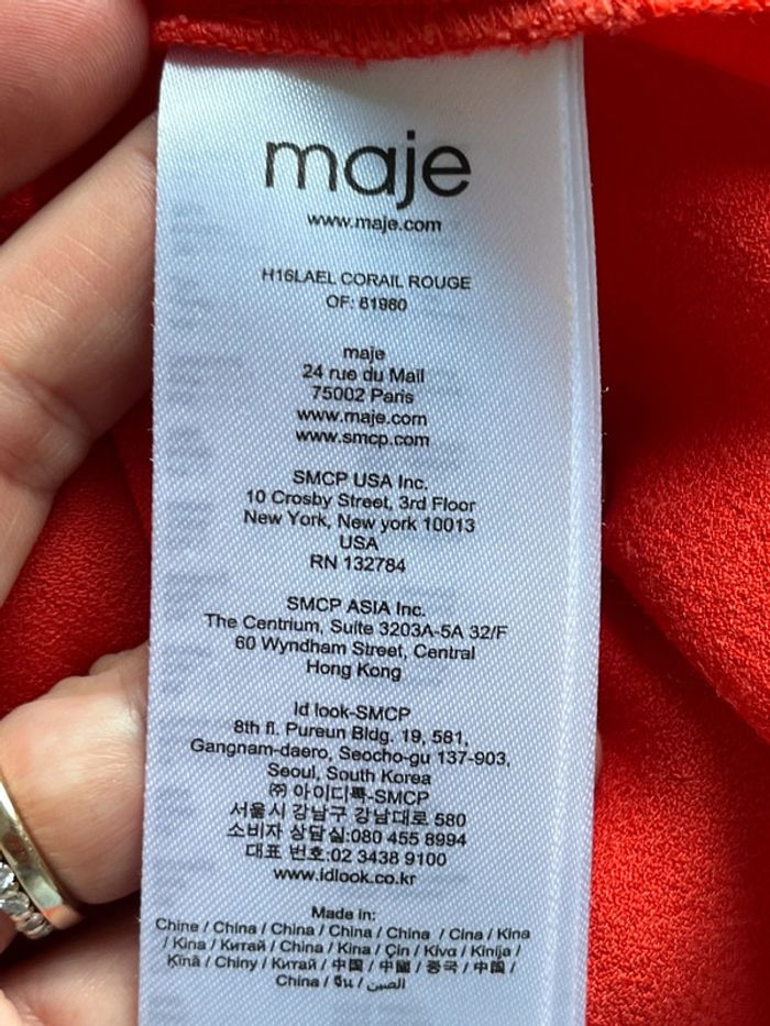 Vends jolie blouse Rouge orangée Maje Volants sur les mèches avec petits clous argentés Jolie ouverture dans le dos Taille 1 #loumathimaje #loumathifemmes #loumathiblouse 🌸 envoi rapide et soigné (Sous 48h ouvrées) 🌸 n’hésitez pas à faire un tour dans mon dressing pour voir mes autres pièces 🌸 étant pro, vous ne pouvez pas créer de lot 🌸 n’hésitez pas à vous abonner à mon compte Vinted car j’ajoute des articles régulièrement