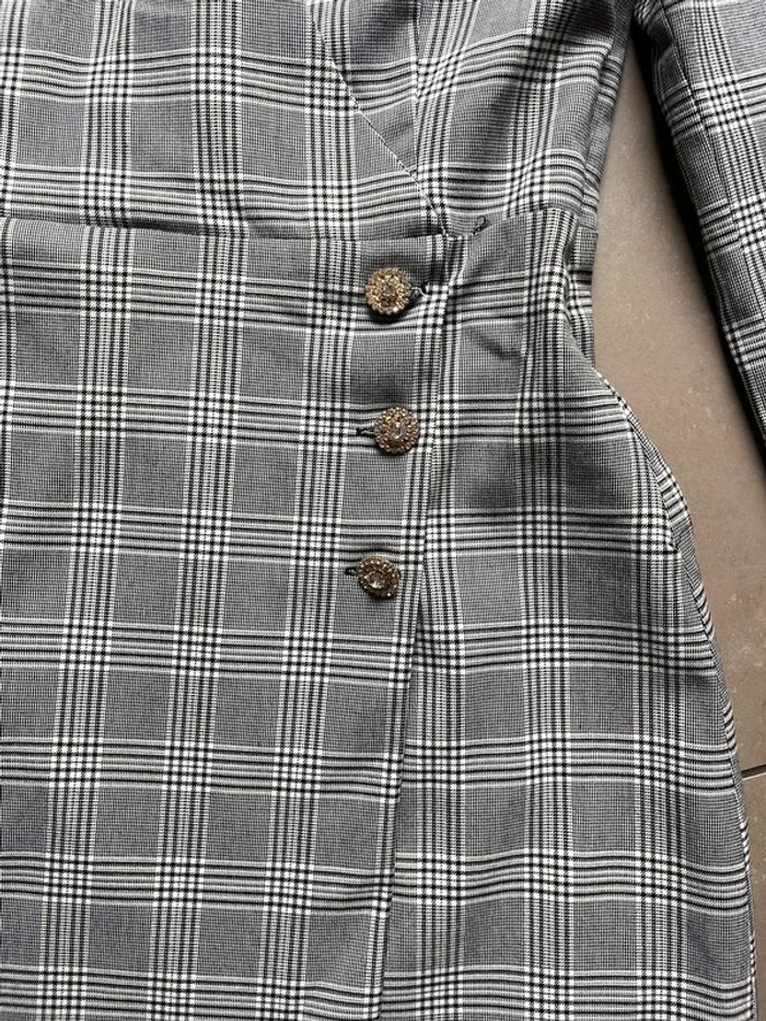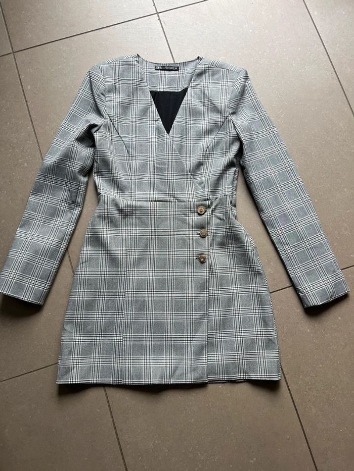 Vends jolie robe Zara Grise à carreaux Cintrée effet cache cœur Jupe portefeuille avec boutons dorés strass Épaulettes Très peu portée #loumathizara #loumathifemmes #loumathirobe 🌸 envoi rapide et soigné (Sous 48h ouvrées) 🌸 n’hésitez pas à faire un tour dans mon dressing pour voir mes autres pièces 🌸 étant pro, vous ne pouvez pas créer de lot, envoyez moi un message si plusieurs articles vous intéressent, je vous créerai une annonce 🌸 n’hésitez pas à vous abonner à mon compte Vinted car j’ajoute des articles régulièrement