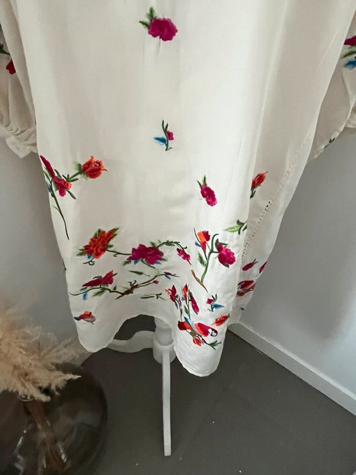 Robe écrue à fleurs brodées Zara XS - photo numéro 7