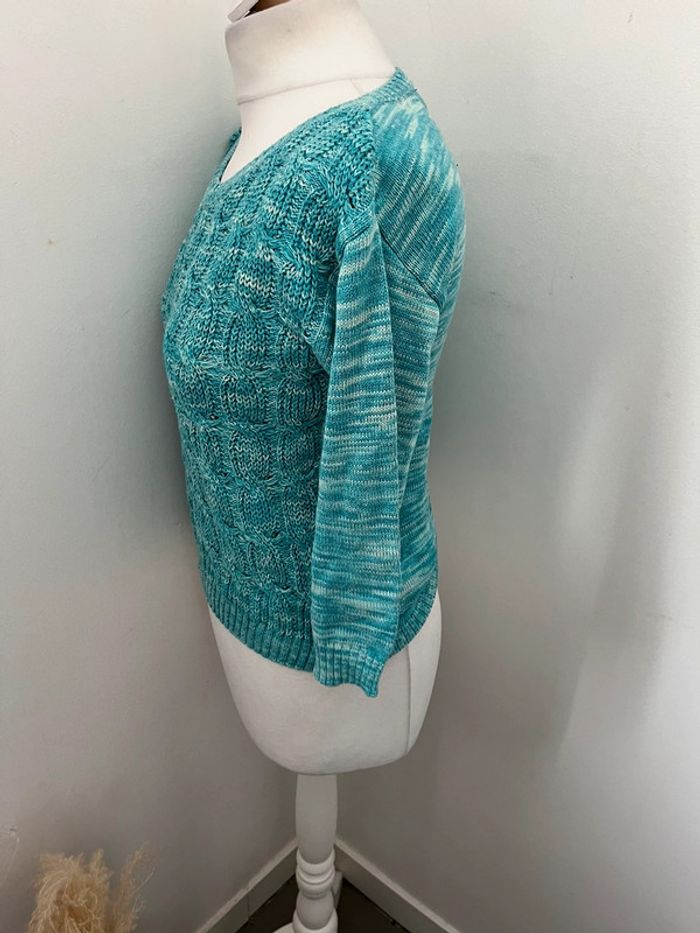 Pull fin torsadé turquoise H&M S comme neuf - photo numéro 3
