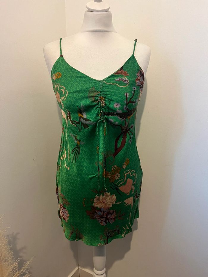 Robe à bretelles verte à motifs Zara XS - photo numéro 1