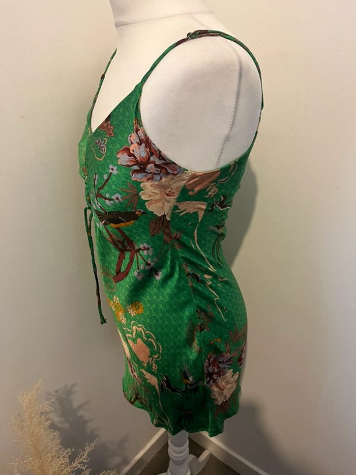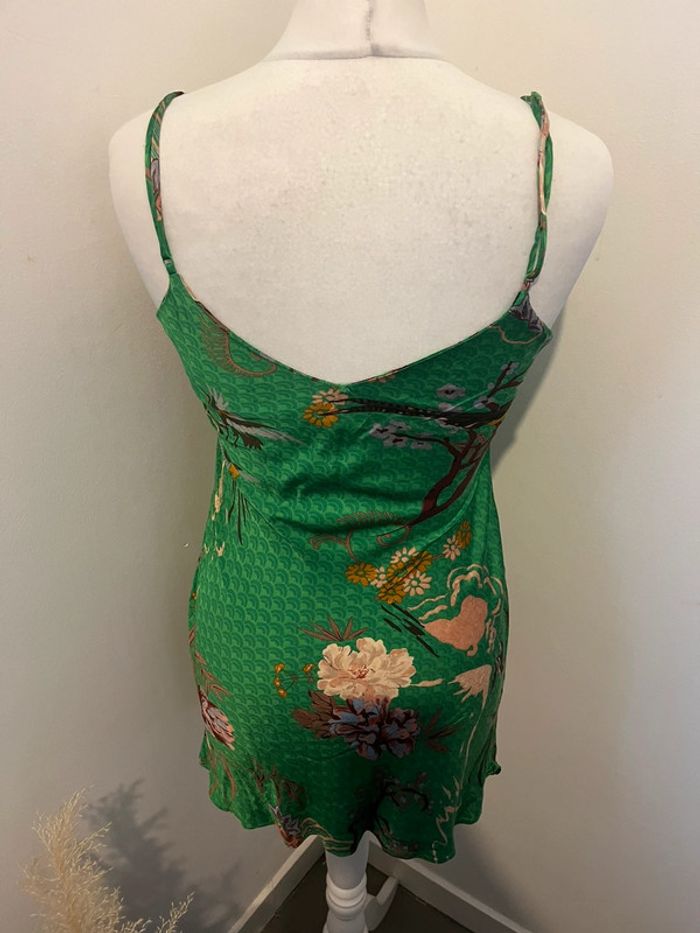 Robe à bretelles verte à motifs Zara XS - photo numéro 5