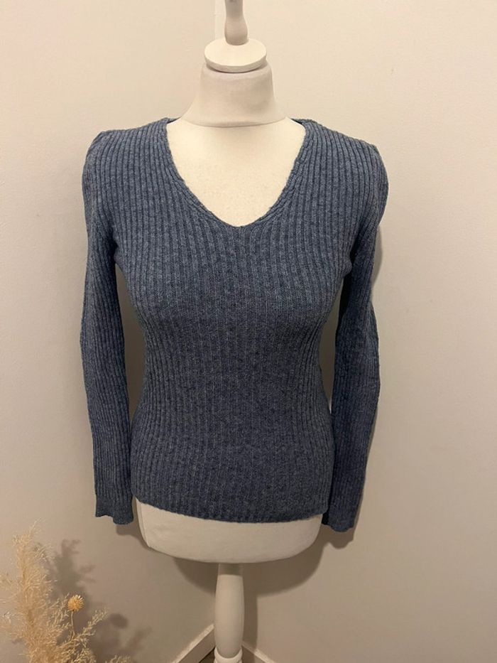 Pull col en V bleu made in Italy S - photo numéro 1