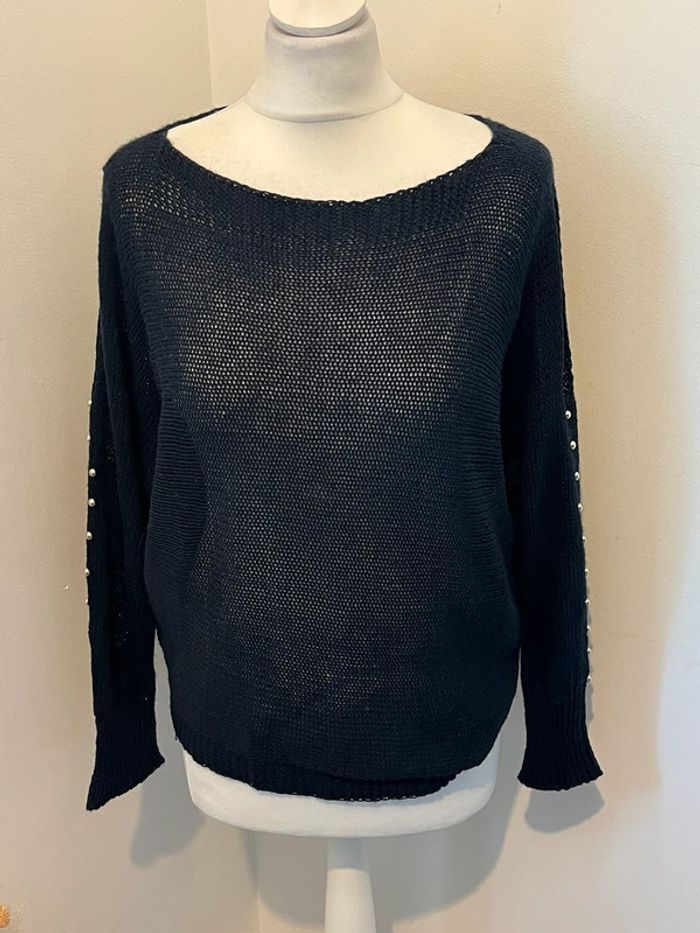 Pull ajouré épaules dénudées marine S - photo numéro 1
