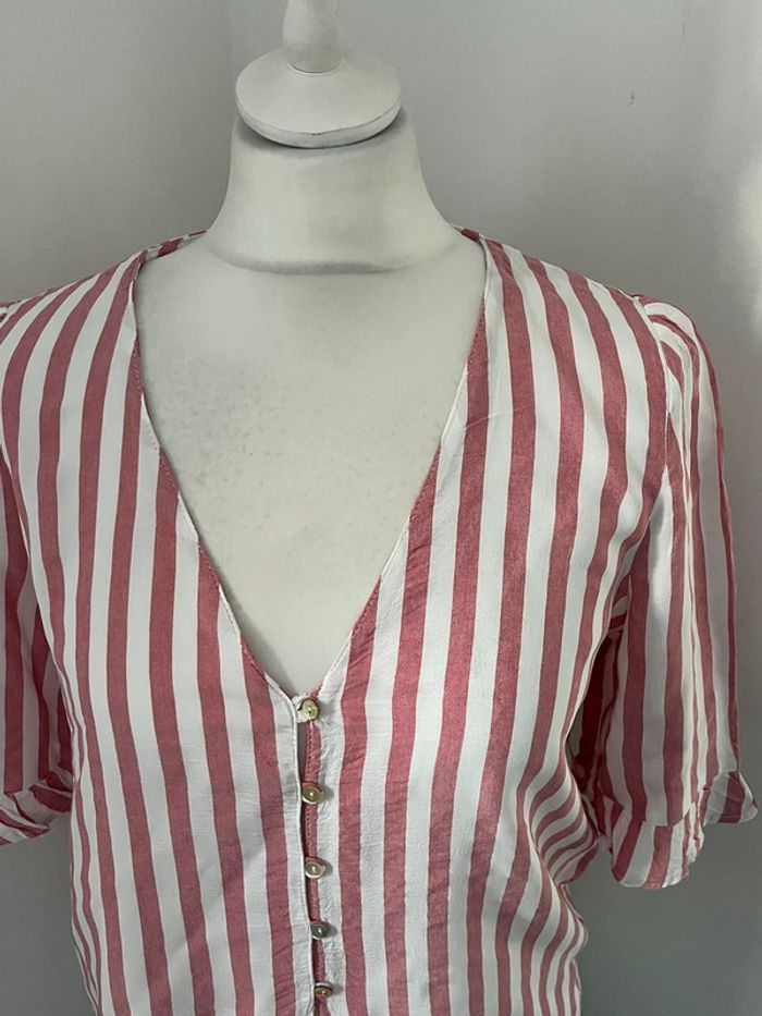 Blouse col en v rayée Zara M - photo numéro 3