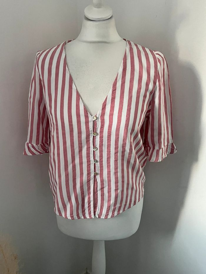 Blouse col en v rayée Zara M - photo numéro 1