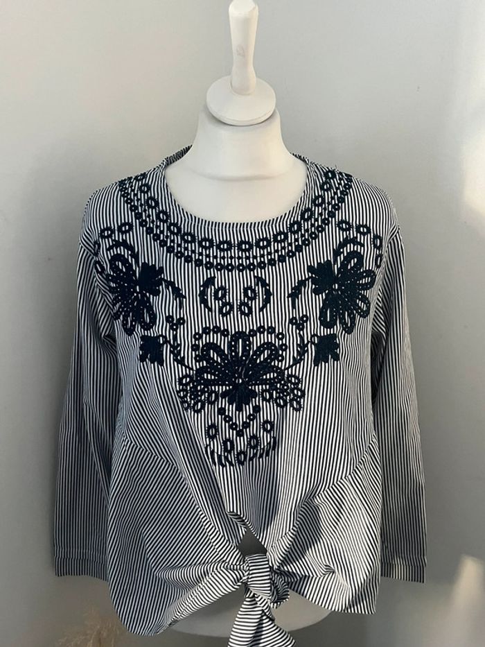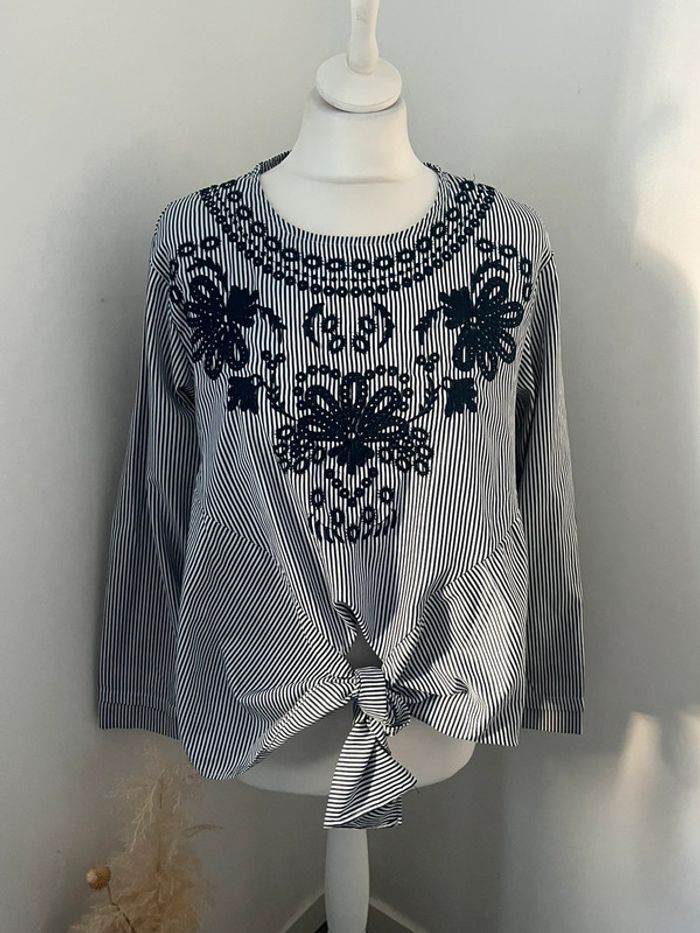Blouse rayée et brodée S - photo numéro 1