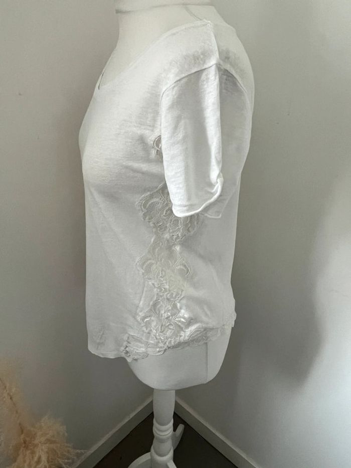 Blouse blanche en lin et dentelle Sandro S - photo numéro 4