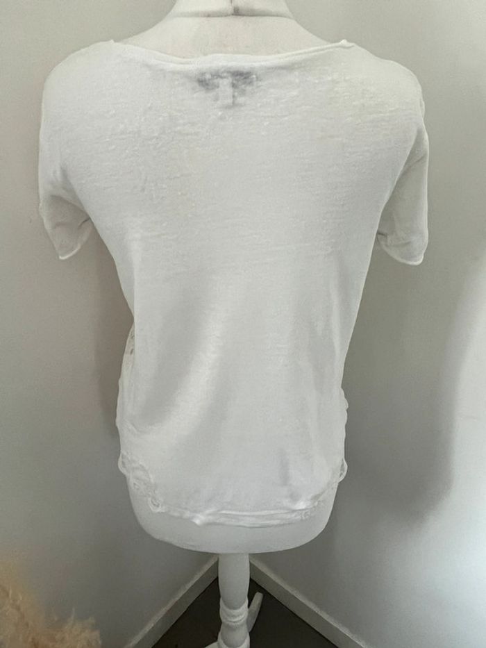 Blouse blanche en lin et dentelle Sandro S - photo numéro 2