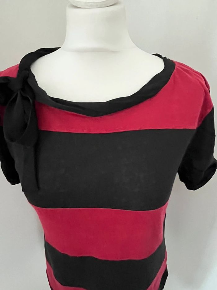 Blouse en lin noir et rouge Sandro M - photo numéro 3