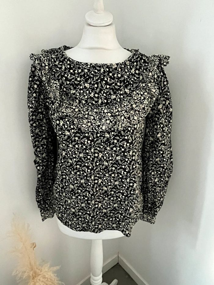 Blouse noire à motifs promod S comme neuve - photo numéro 1