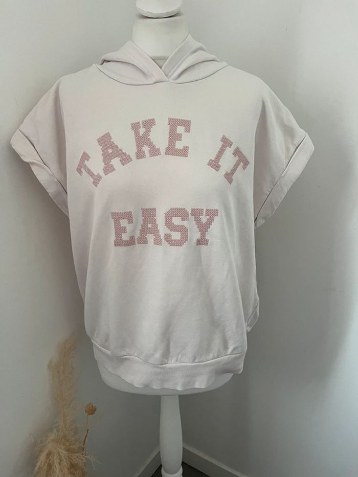 Vends joli sweat à capuche Oversize Rise très pâle avec ecriture Take it easy Camaïeu Taille XL’ Très peu porté #loumathifemmexl #loumathipull 🌸 envoi rapide et soigné (Sous 48h ouvrées) 🌸 n’hésitez pas à faire un tour dans mon dressing pour voir mes autres pièces 🌸 étant pro, vous ne pouvez pas créer de lot, envoyez moi un message si plusieurs articles vous intéressent, je vous créerai une annonce 🌸 n’hésitez pas à vous abonner à mon compte Vinted car j’ajoute des articles o régulièrement
