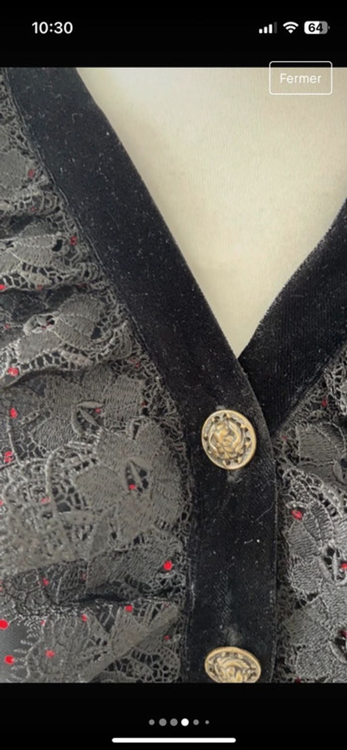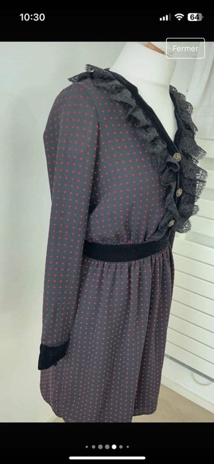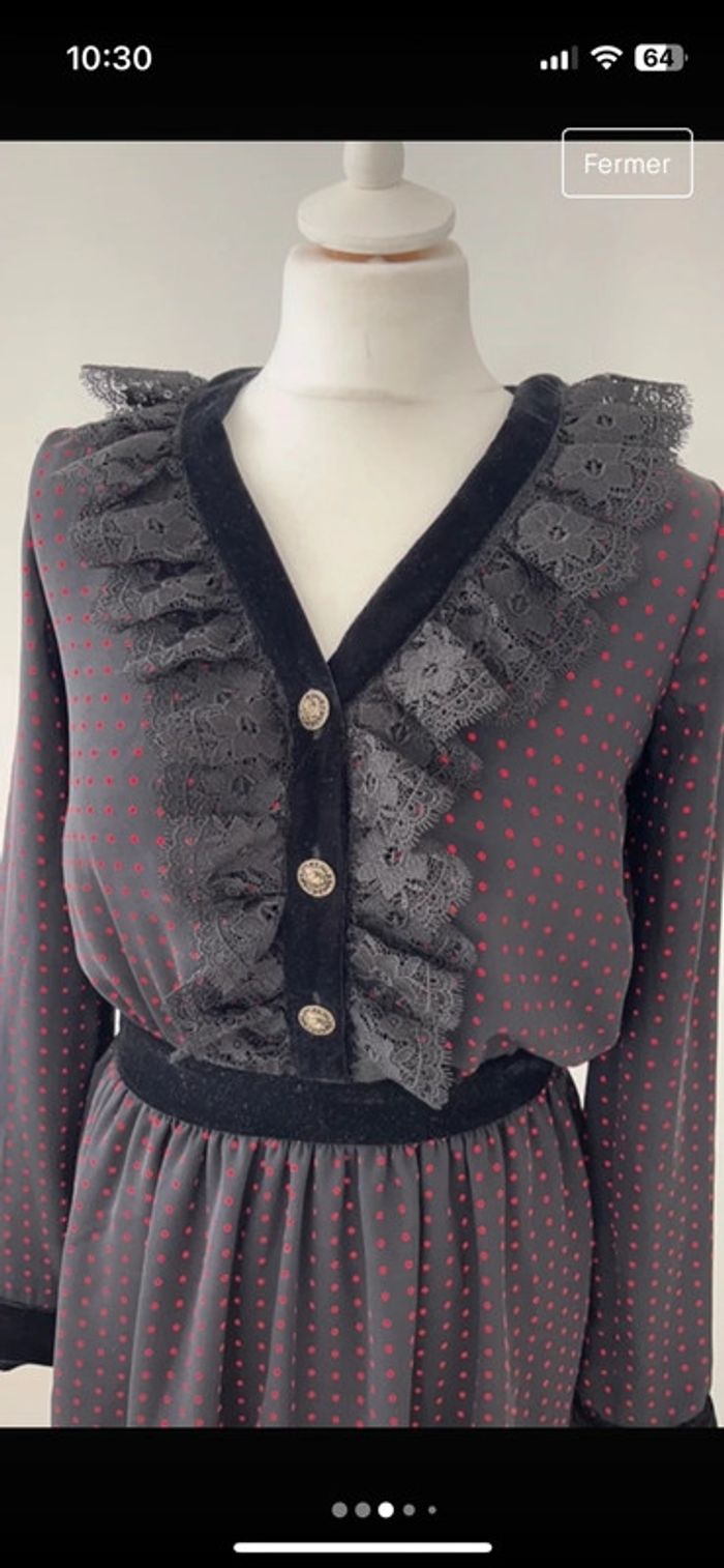 Vends jolie robe The Kooples Avec encolure velours noir et dentelle Noire à pois rouge Taille Xs Jupon pour éviter la transparence Matière qui ne froisse pas Fermeture éclair sur le côté Jamais portée #loumathikooples #loumathirobe #loumathifemmexs 🌸 envoi rapide et soigné (Sous 48h ouvrées) 🌸 n’hésitez pas à faire un tour dans mon dressing pour voir mes autres pièces 🌸 étant pro, vous ne pouvez pas créer de lot, envoyez moi un message si plusieurs articles vous intéressent, je vous créerai une annonce 🌸 n’hésitez pas à vous abonner à mon compte Vinted car j’ajoute des articles o régulièrement