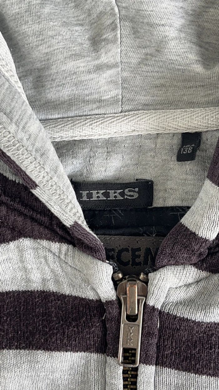 Vends cardigan zippé rayé à capuche Gris et noir Ikks 10 ans #loumathigarcondixans #loumathiikks #loumathicardigan 🌸 envoi rapide et soigné (Sous 48h ouvrées) 🌸 n’hésitez pas à faire un tour dans mon dressing pour voir mes autres pièces 🌸 étant pro, vous ne pouvez pas créer de lot, envoyez moi un message si plusieurs articles vous intéressent, je vous créerai une annonce 🌸 n’hésitez pas à vous abonner à mon compte Vinted car j’ajoute des articles o régulièrement