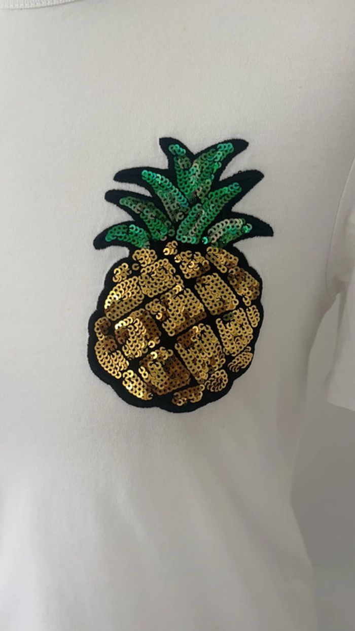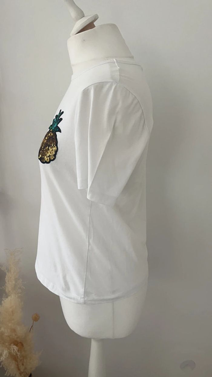 Vends joli t-shirt blanc Ananas en sequin Asos Taille 34 Très peu porté #loumathifemmexs #loumathiblouse 🌸 envoi rapide et soigné (Sous 48h ouvrées) 🌸 n’hésitez pas à faire un tour dans mon dressing pour voir mes autres pièces 🌸 étant pro, vous ne pouvez pas créer de lot, envoyez moi un message si plusieurs articles vous intéressent, je vous créerai une annonce 🌸 n’hésitez pas à vous abonner à mon compte Vinted car j’ajoute des articles o régulièrement