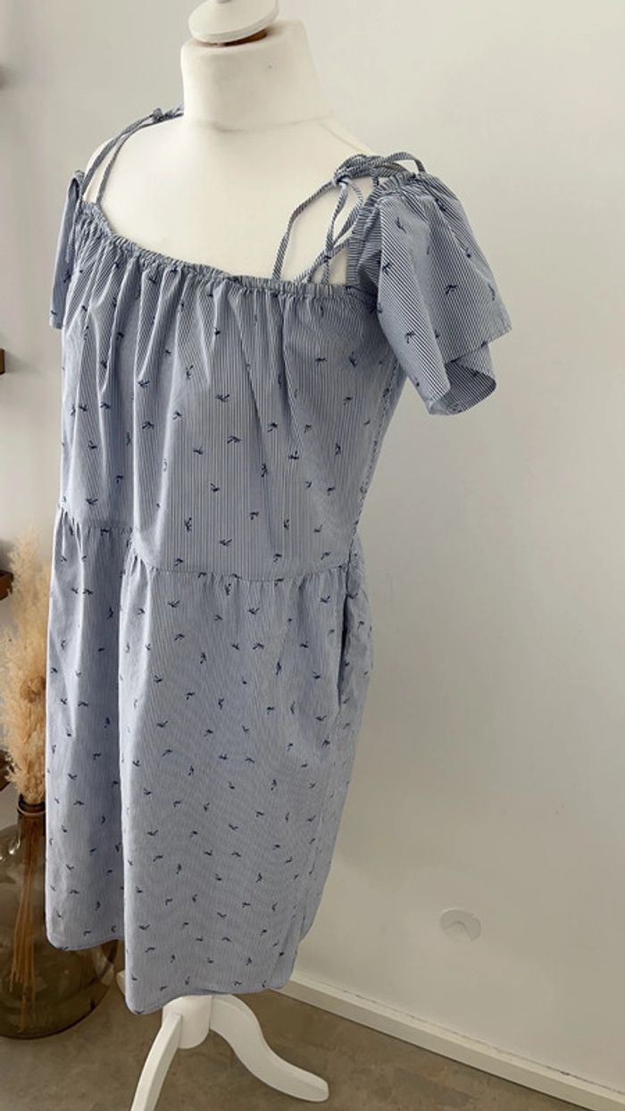 Vends jolie robe MNG Bleu à rayures blanches avec motifs Épaules dénudées avec fines bretelles Taille S #loumathirobe #loumathifemmes #loumathimango 🌸 envoi rapide et soigné (Sous 48h ouvrées) 🌸 n’hésitez pas à faire un tour dans mon dressing pour voir mes autres pièces 🌸 étant pro, vous ne pouvez pas créer de lot, envoyez moi un message si plusieurs articles vous intéressent, je vous créerai une annonce 🌸 n’hésitez pas à vous abonner à mon compte Vinted car j’ajoute des articles o régulièrement