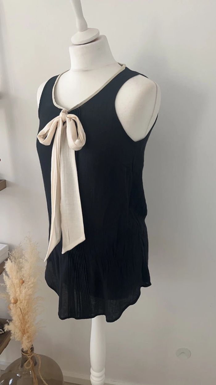 Blouse noire avec cravate écrue Sandro S - photo numéro 5
