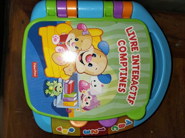 Livre interactif de comptines : - alouette, - l'araignée Gipsy, - Rame, rame sur ton bateau, - un, deux je mets mes chaussures, - petit moulin, - tape dans tes mains Sonore et lumineux