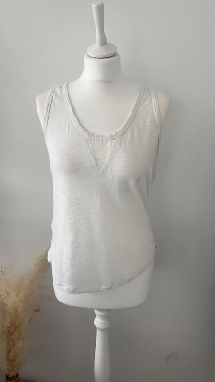 Vends joli débardeur Dos ajoure avec fermeture éclair Taille 36 Blanc 🌸 envoi rapide et soigné (Sous 48h ouvrées) 🌸 n’hésitez pas à faire un tour dans mon dressing pour voir mes autres pièces 🌸 étant pro, vous ne pouvez pas créer de lot, envoyez moi un message si plusieurs articles vous intéressent, je vous créerai une annonce 🌸 n’hésitez pas à vous abonner à mon compte Vinted car j’ajoute des articles régulièrement