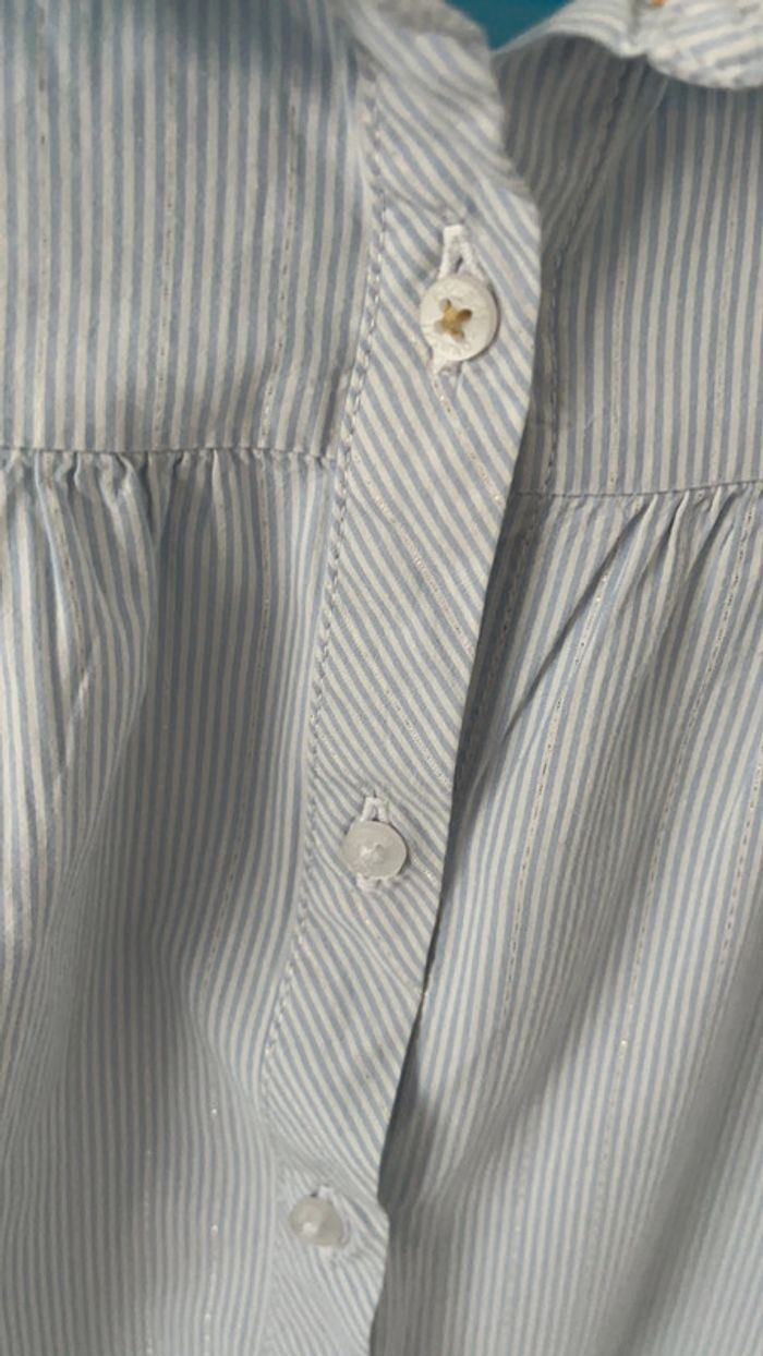 Vends chemisier fille Okaidi Fine rayures avec légers fils argentés 10 ans Très bon état #loumathichemise 🌸 envoi rapide et soigné (Sous 48h ouvrées) 🌸 n’hésitez pas à faire un tour dans mon dressing pour voir mes autres pièces 🌸 étant pro, vous ne pouvez pas créer de lot, envoyez moi un message si plusieurs articles vous intéressent, je vous créerai une annonce 🌸 n’hésitez pas à vous abonner à mon compte Vinted car j’ajoute des articles régulièrement