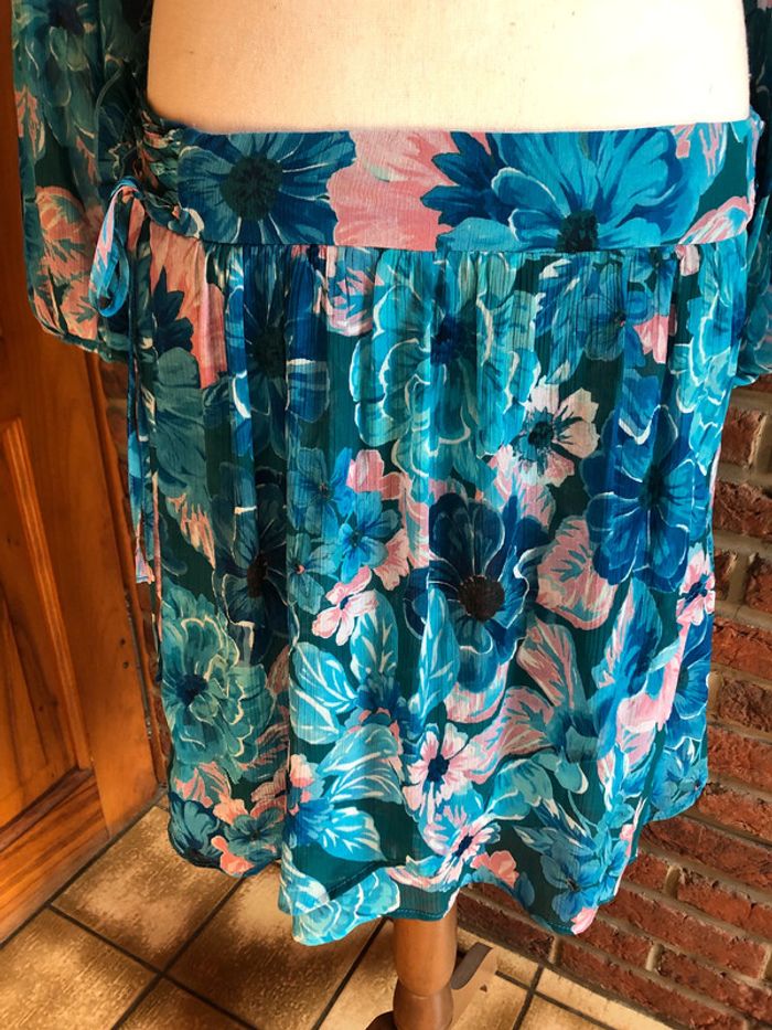 Ensemble assorti composé de : - une blouse cache cœur - une jupe taille élastique Naf naf Taille 38 Motifs fleurs Couleurs : bleu turquoise et rose pâle N eu f s avec étiquette (valeur 104,98€)