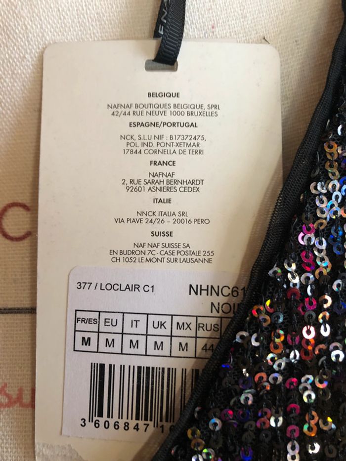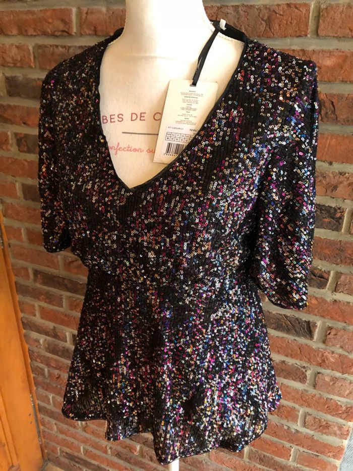 Blouse noire à sequins strass paillettes multicolores Naf naf Taille M Manches courtes Décolleté col en V idéal pour les fêtes N e u f avec éti quette (Valeur 44,99€)