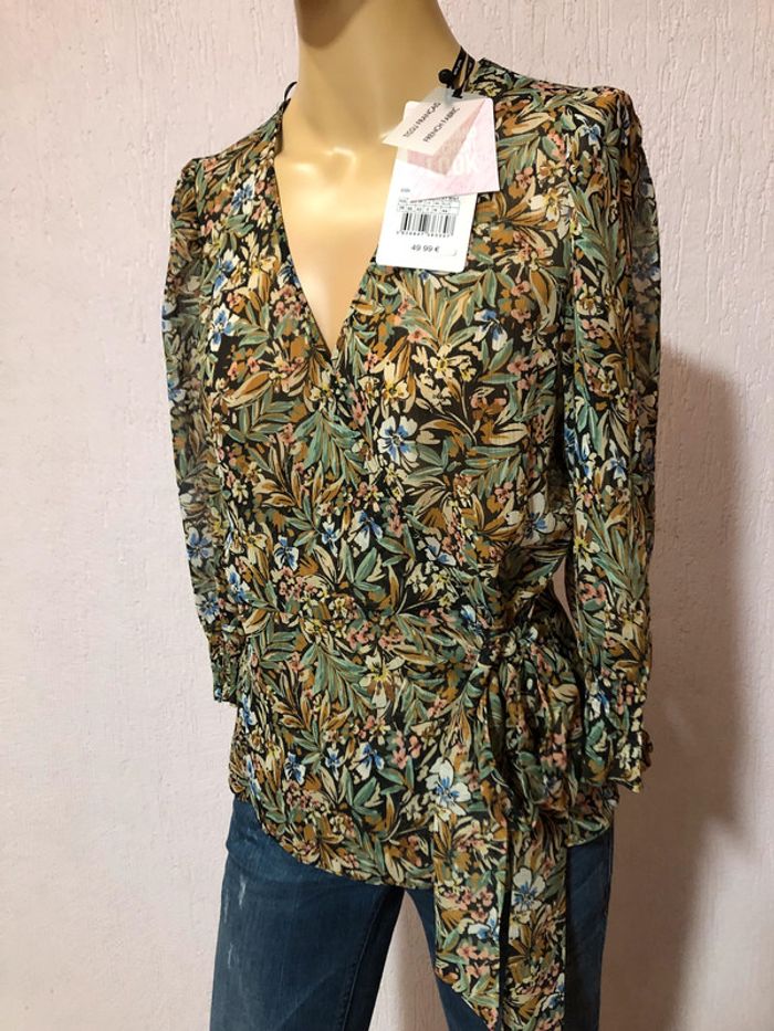 Blouse portefeuille / cache-coeur à fleurs / tropical Naf Naf taille 38 coloris vert Kaki camel bleu pastel rose pastel et crème Manches 3/4 n e u v e jamais portée (valeur 49,99€)