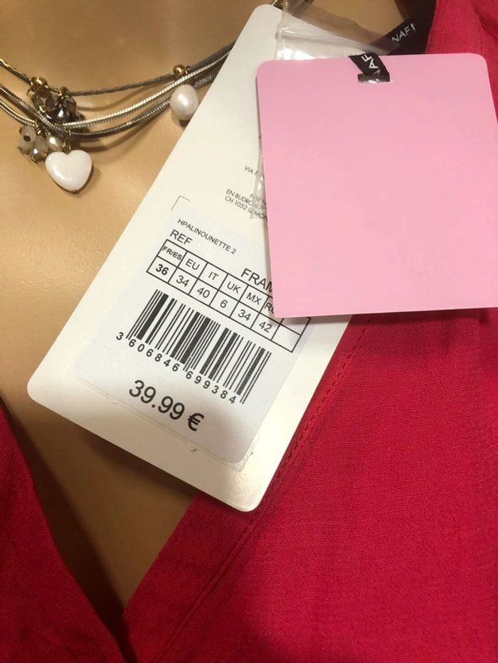 Chemisier blouse rose fuchsia avec dentelle ajourée dans le dos, col en V. Petits boutons dorés à l'avant Naf naf taille 36 jamais porté, n e u f avec éti que tte valeur 39,99€ #Mllenafnaf_Nafnaf