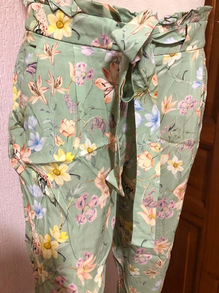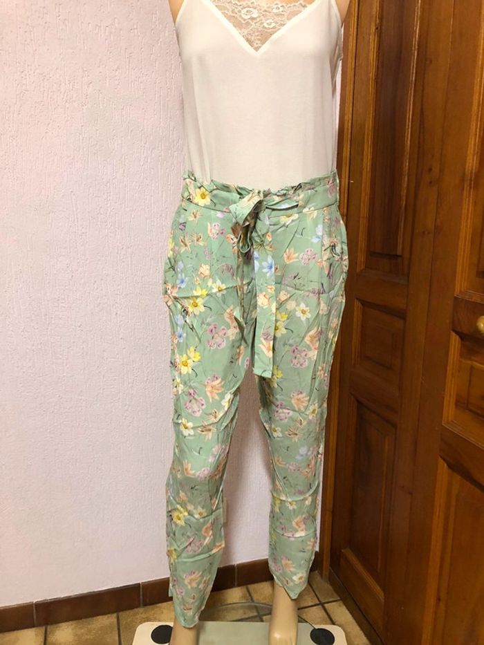 Pantalon carotte d'été à fleurs dans les tons pastel vert d'eau Taille 40 - Naf naf avec ceinture imprimé floral jamais porté - n e u f avec étique tte (valeur 54,99€) #nafnaf #pantalon