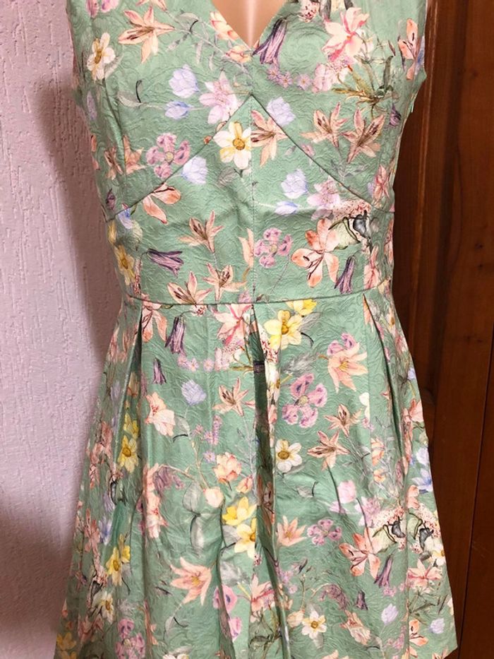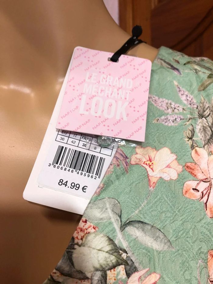 Robe cintrée d'été couleur vert eau / vert menthe avec fleurs dans les tons pastels imprimé floral dos semi ouvert avec noeud fermeture éclair sur le coté Bas doublé avec jupon pour donner du volume très féminine et estivale aille 38 - naf naf valeur 84,99€ ( ne uve avec éti que tte) #Mllenafnaf_Nafnaf #Mllenafnaf_robe #nafnafste