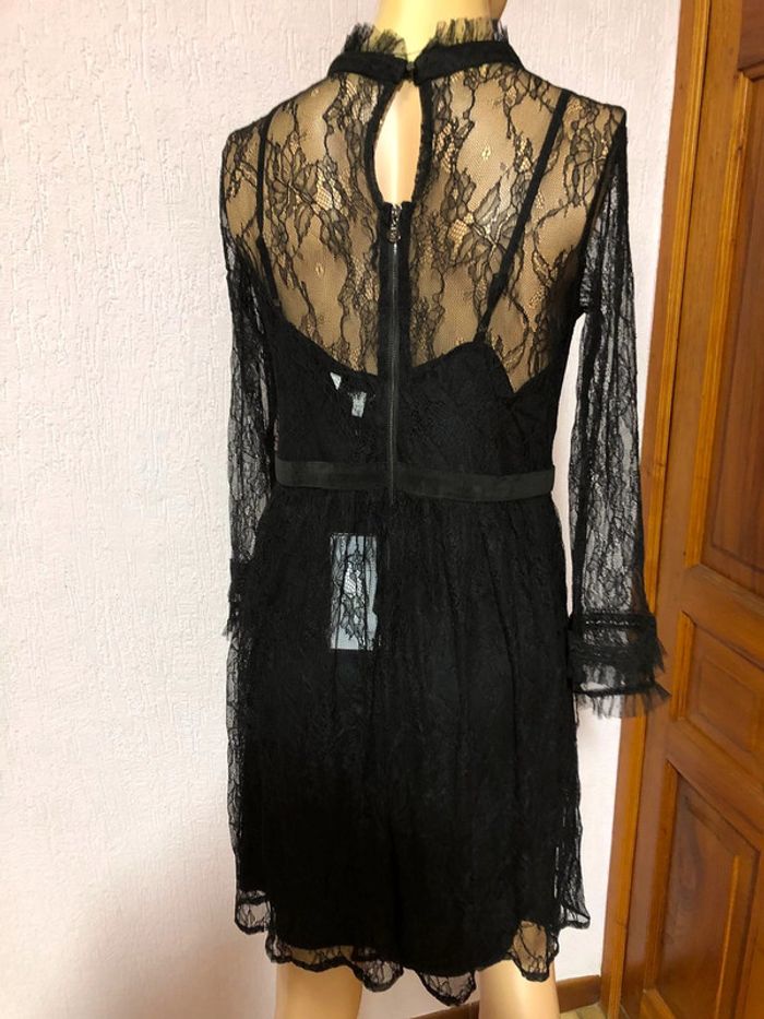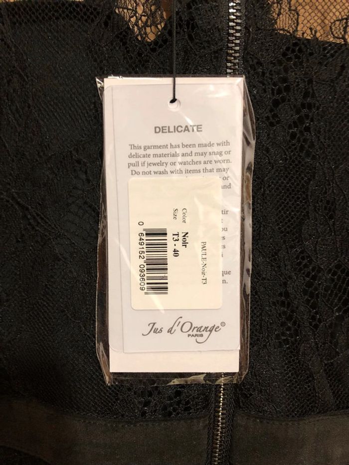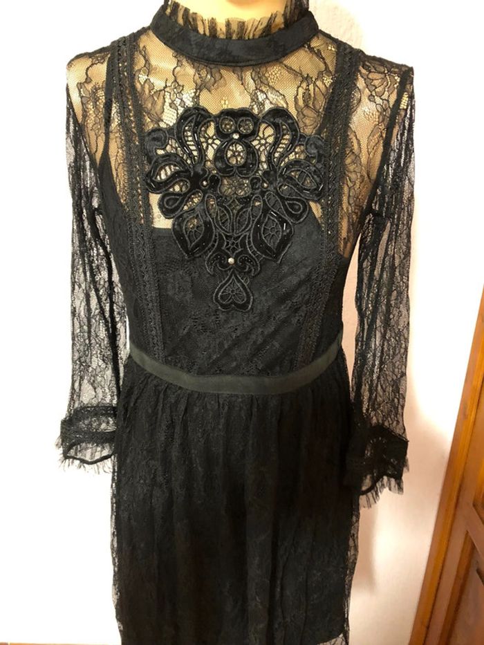 Robe noire en dentelle Jus d'orange Style gothique romantique wednesday mecredi Addams Fermeture tirette dans le dos et goutte à la nuque Manches 3/4 Taille 40 jamais mise n e u v e avec éti que tte