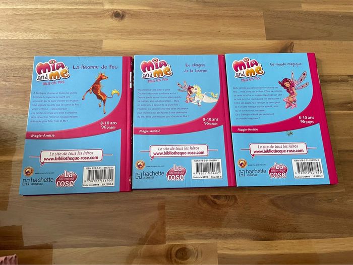 3 livres de la bibliothèque rose collection Mia et moi 1 - le monde magique 7 - le chagrin de la licorne 10 - la licorne de feu