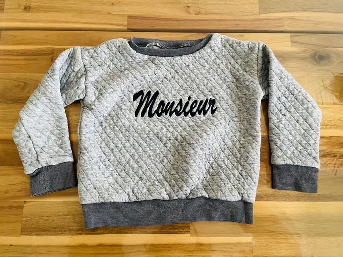 Sweat « Monsieur » 36 mois Tape à l’œil Légèrement abîmé à la manche voir photo