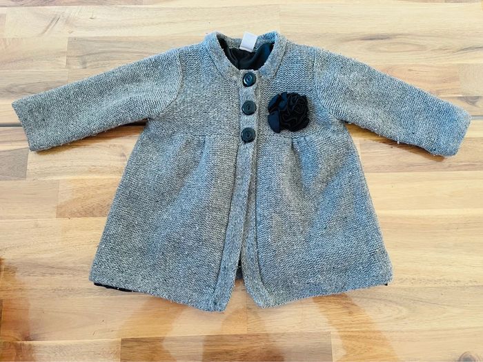 Veste grise avec fleur noire 18/24 mois taille plutôt grand Quelques bouloches