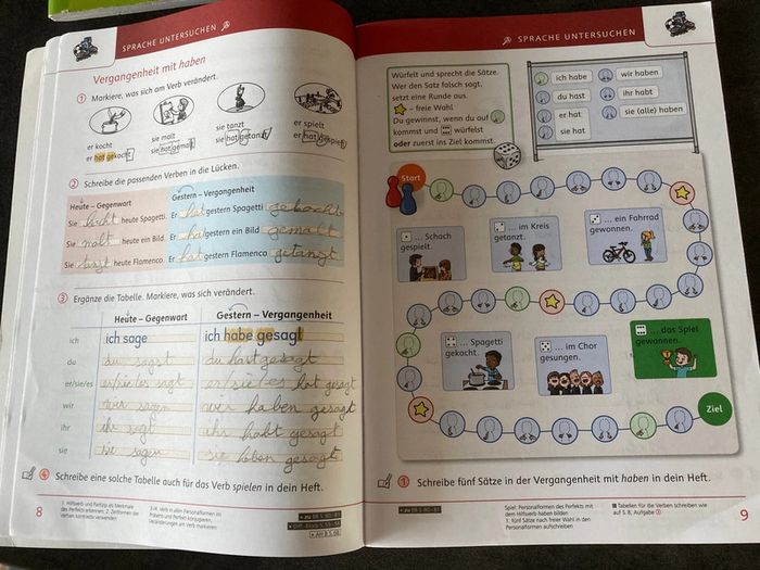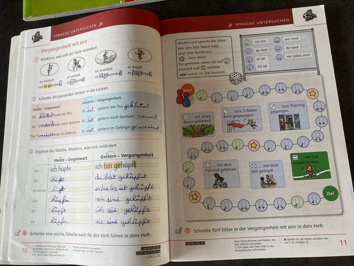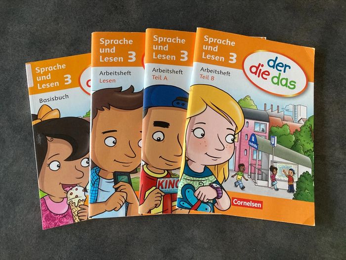 Méthode complète d’allemand niveau primaire Classe bilingue français/allemand Der Die das Cornelsen - Basisbuch - Arbeitsheft Lesen - Arbeitsheft Teil A - Arbeitsheft Teil B Seules les pages prises en photos ont été complétées dans les cahiers d’exercices. Donc ils sont quasi vierges et neufs ! Manuels en excellent état. Maison non fumeur