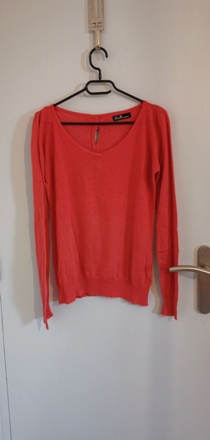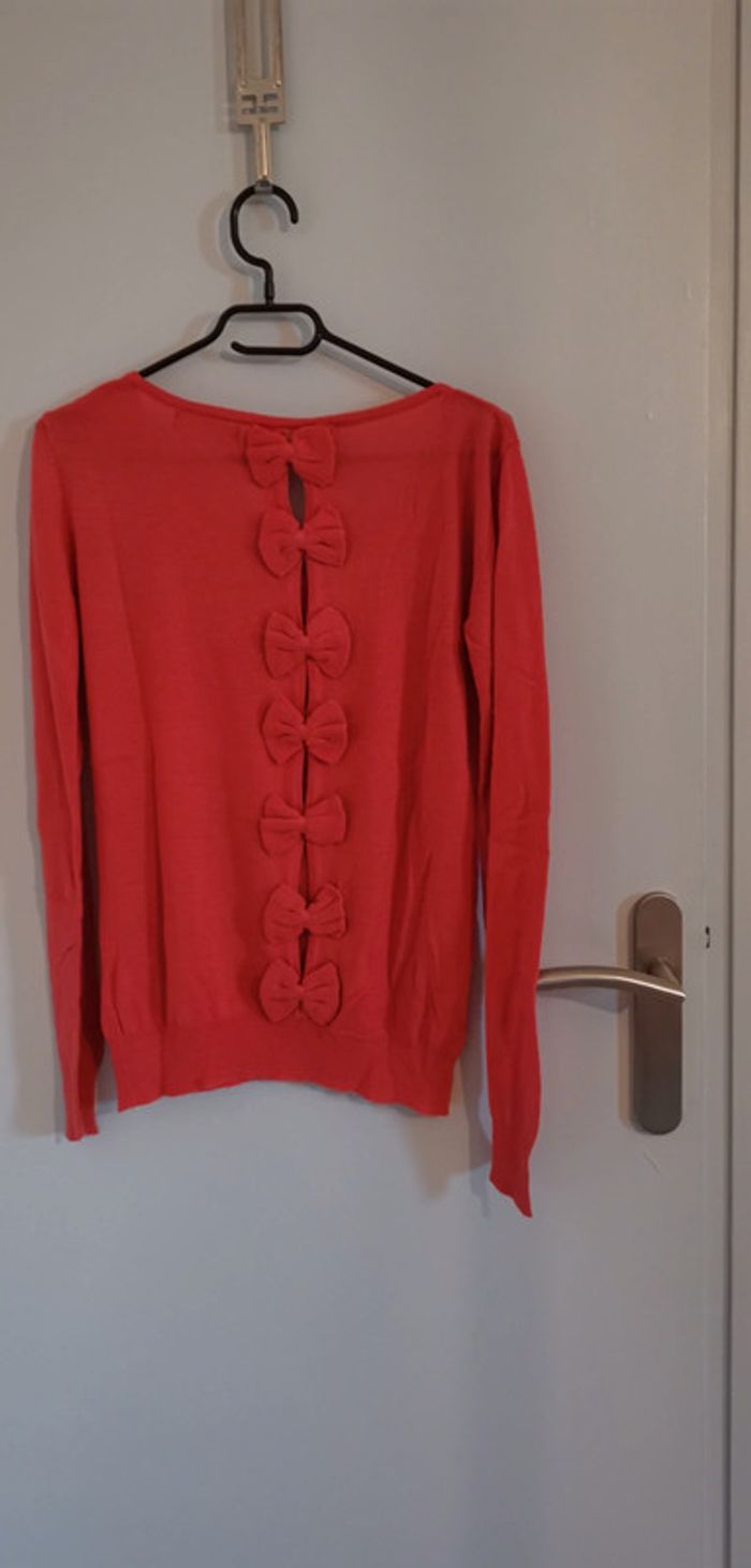 Pull rose, nœuds dans le dos avec ouverture, taille S Petit trou visible sur la photo 3, nécessite un point de couture ⚠️ Réduction appliquée sur les lots !! ⚠️