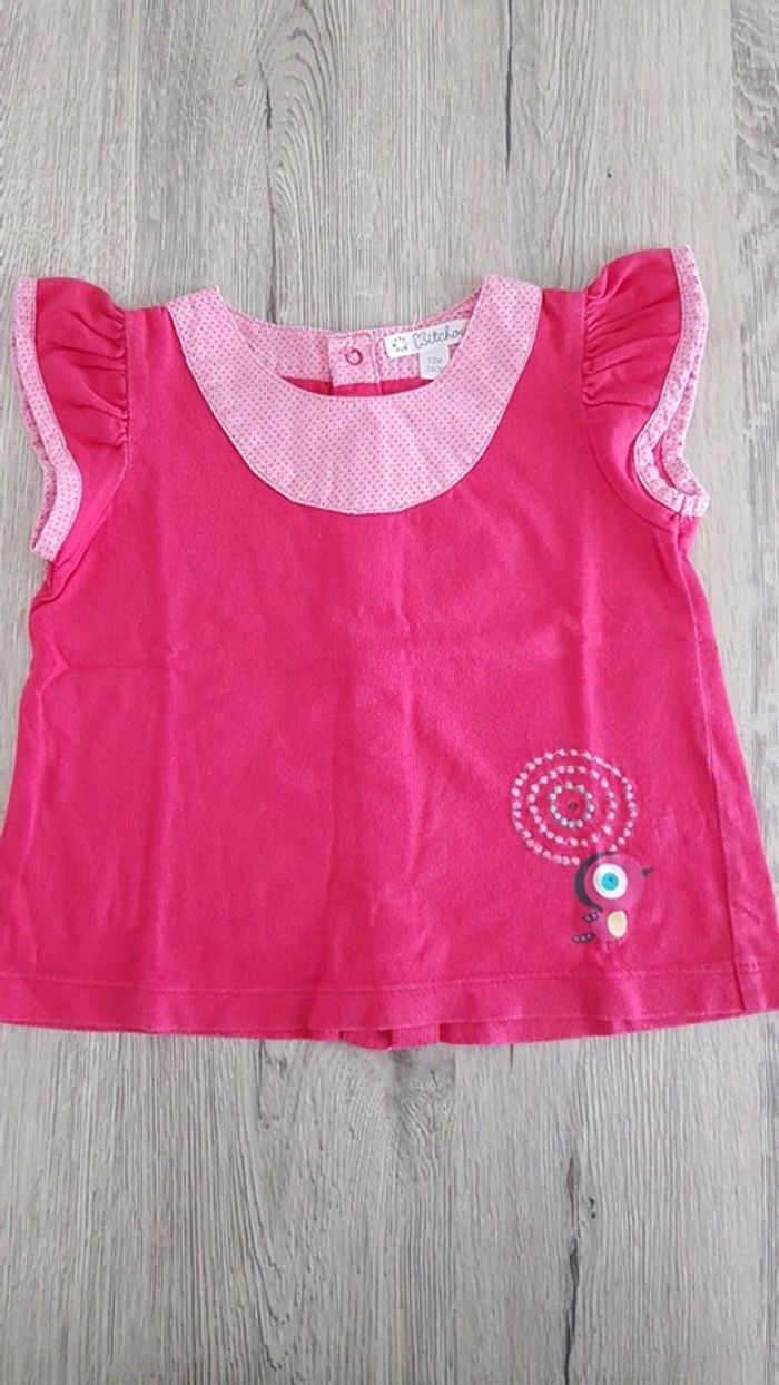 #12moiskarene51 Tee shirt manches courtes, peinture pression légèrement abîmé voir photo. 12 mois.