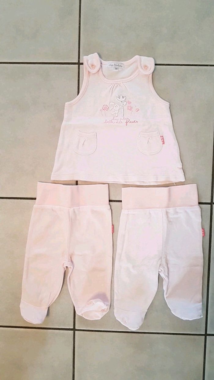 #3moiskarene51 Ensemble composé d'une tunique et de 2 pantalons avec pieds. 3 mois.