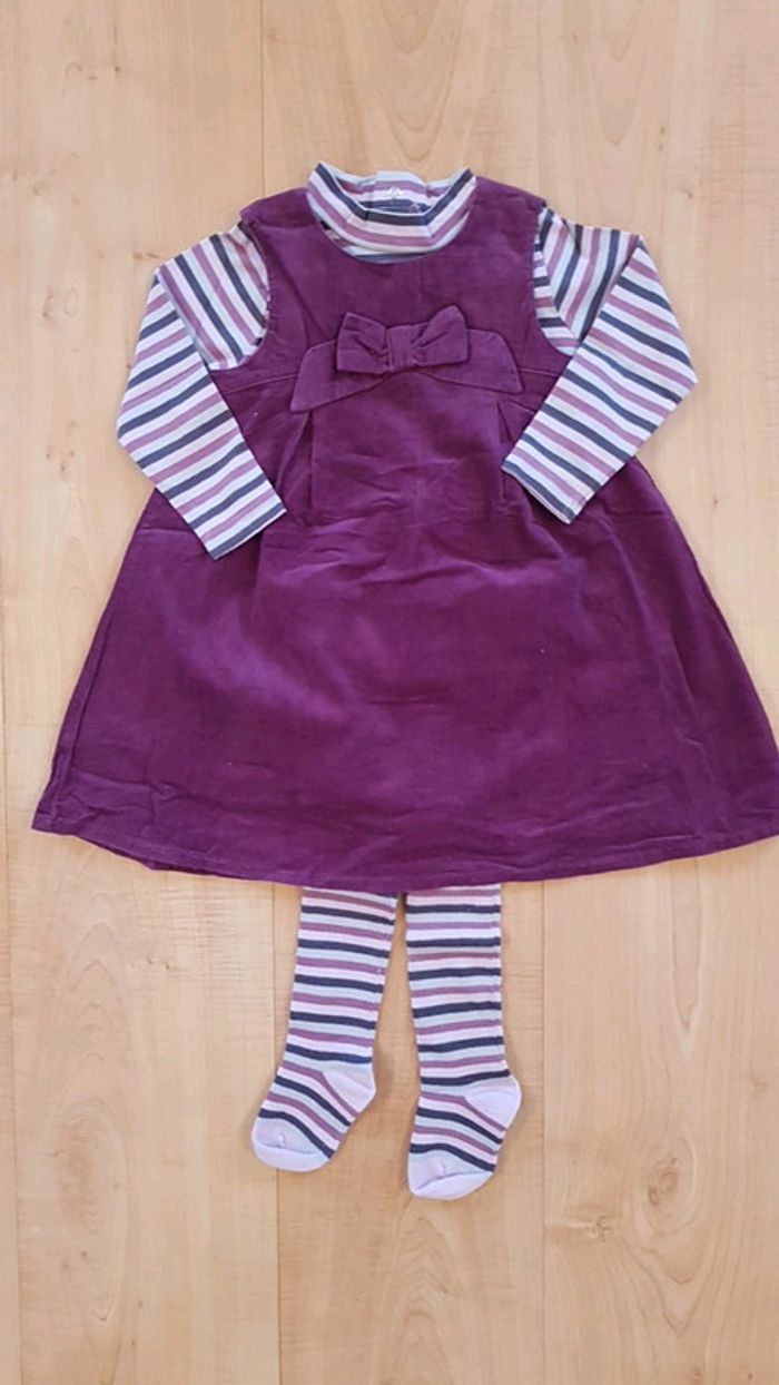 Ensemble composé d'une robe, d'un tee shirt manches longues et d'une paire de collant. 18 mois. Parfait état. #18moiskarene51 #18mois