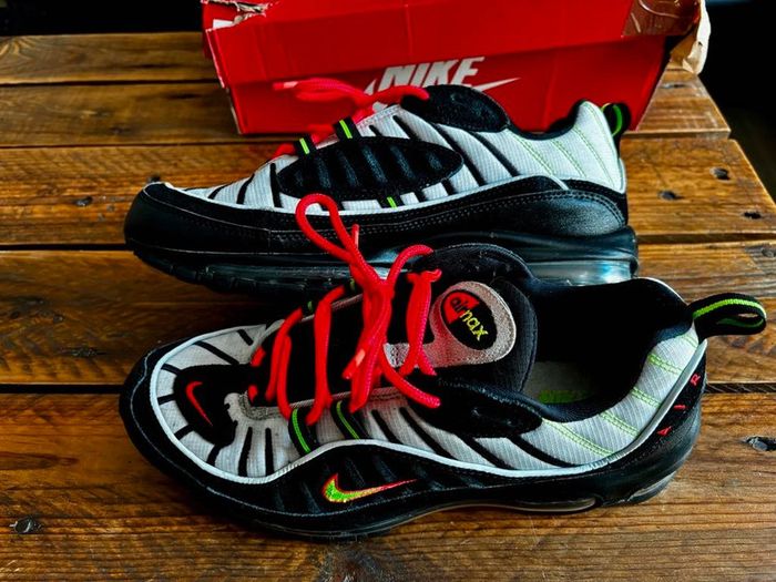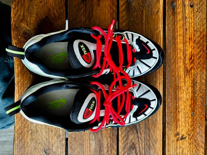 👟 Modèle : Nike Air Max 98 “Highlighter” 🎨 Couleurs : Multicolore (Jaune fluorescent, Rose, Vert, Bleu) 📏 Taille : 42 ✅ État : Très bon état, portées quelques fois mais bien entretenues. 📦 Boîte : Sans boîte originale 🌟 Description : Ces Nike Air Max 98 “Highlighter” sont un véritable concentré de couleurs vives pour un look original et énergique. Parfaites pour ceux qui aiment se démarquer, ces sneakers combinent confort et style. Les chaussures sont en très bon état général.
