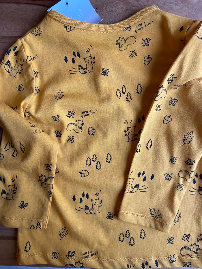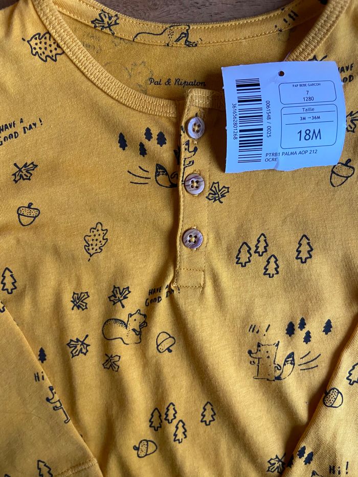 T-shirt ML coton Pat et ripaton Jaune motif forêt Neuf avec étiquette 18 mois
