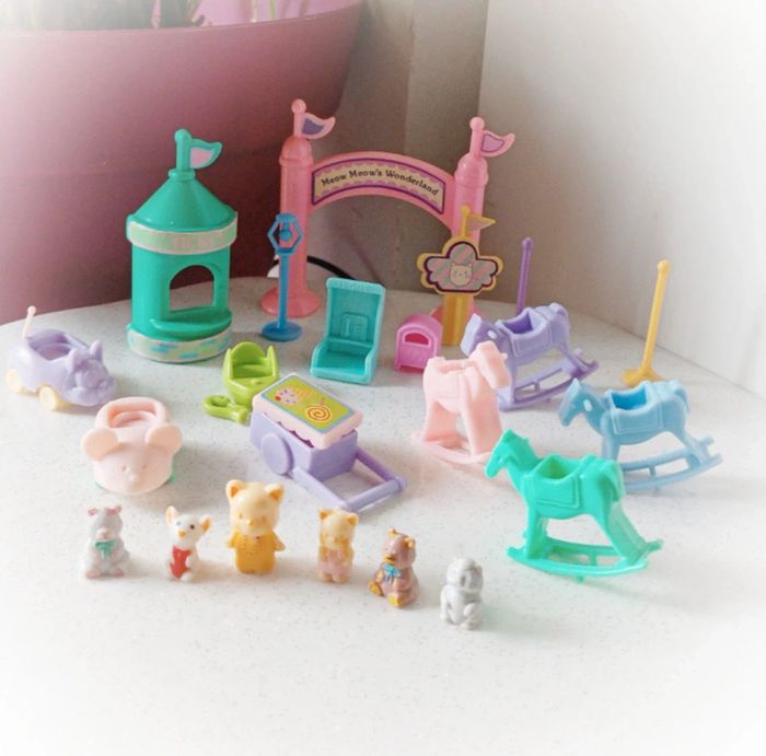 Très joli lot rare Meow wonderland miniature mini vintage micro Kitty attraction manège cheval miaouss ... Tel que sur les photos reste en bel état général
