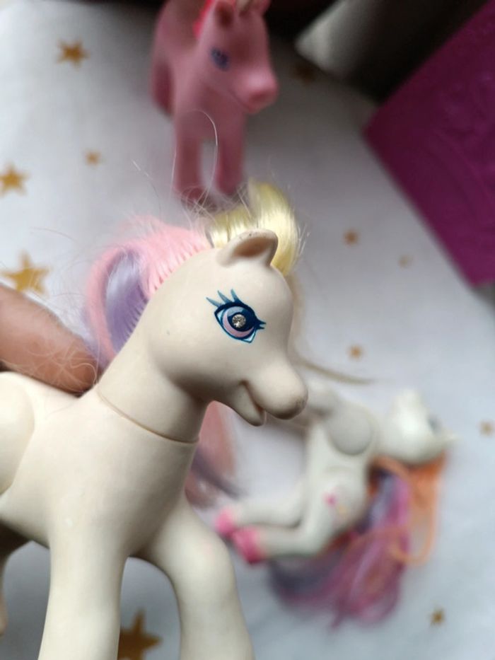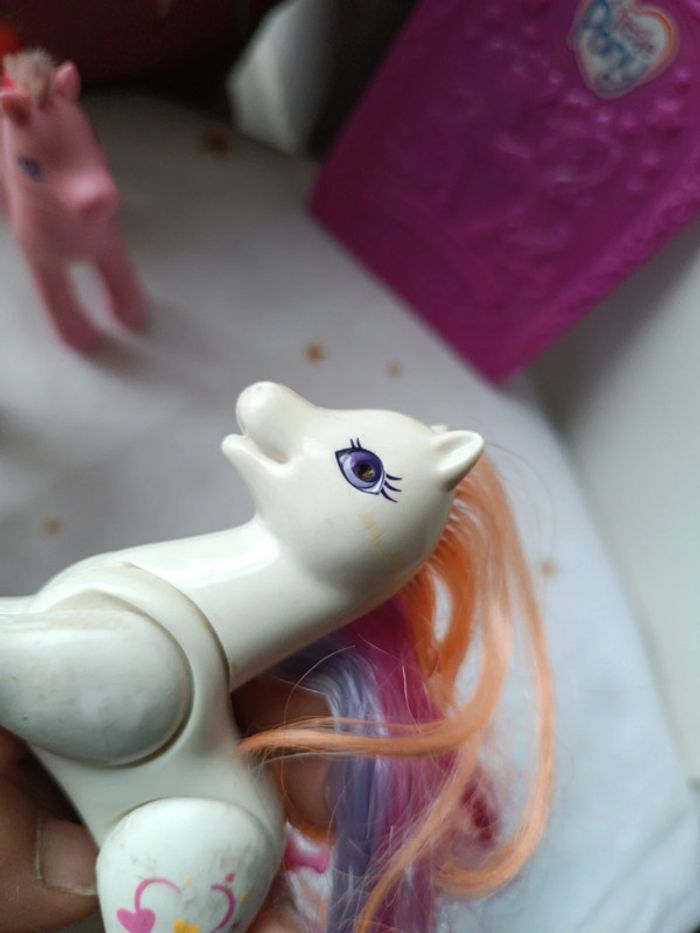 Petit poney pony little articulé diamant diamond strass yeux blanc white rose pink cloche cadeau gift coeur Heart lady romantica dans leur jus pas tenté de les nettoyer ou autre. Avec en plus un chapeau et un miroir mirror qui vient du château castle 🌸Plusieurs articles vous intéressent ❔ ✔️Contactez moi je vous créerais votre lot avec remise ✨ Vous achetez ce que vous voyez 😉 ⚠️Ces jouets sont vintage ils peuvent présenter des imperfections dû à l'usage ou au temps mais sont fonctionnels les photos vous en disent plus elles complètent ce descriptif, sinon n'hésitez pas je reste disponible ! ABONNE TOI JE VAIS EN METTRE D'AUTRES 👋 #vintage #collection maison monde minuscule ancien world coffret rétro jeux jouet poupée 90 collection vintage poupée miniature univers playset set tiny