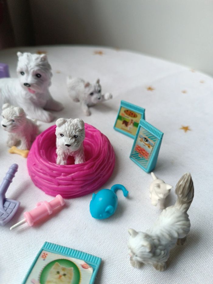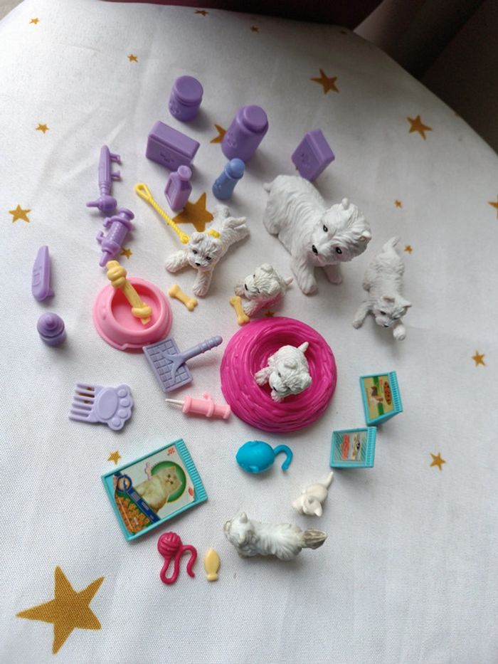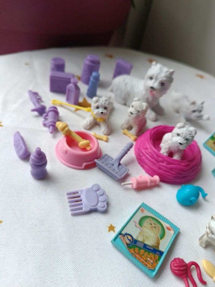 5 Chien dog et 1 chat cat blanc white (centre 1998 ?) accessoires terrier Persan accessoires soins vétérinaire food croquette nourriture panier gamelle laisse jouet etc très bel ensemble en joli état type poupée mannequin barbie Steffi 🌸Plusieurs articles vous intéressent ❔ ✔️Contactez moi je vous créerais votre lot avec remise ✨ Vous achetez ce que vous voyez 😉 ⚠️Ces jouets sont vintage ils peuvent présenter des imperfections dû à l'usage ou au temps mais sont fonctionnels les photos vous en disent plus elles complètent ce descriptif, sinon n'hésitez pas je reste disponible ! ABONNE TOI JE VAIS EN METTRE D'AUTRES 👋 #vintage #collection #Mini maison monde minuscule ancien world coffret rétro jeux jouet poupée 90 collection vintage poupée miniature univers playset set tiny