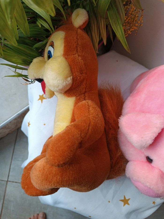 Peluche plush doudou Teddy grande Big écureuil cochon pig squirrel vintage pet animaux