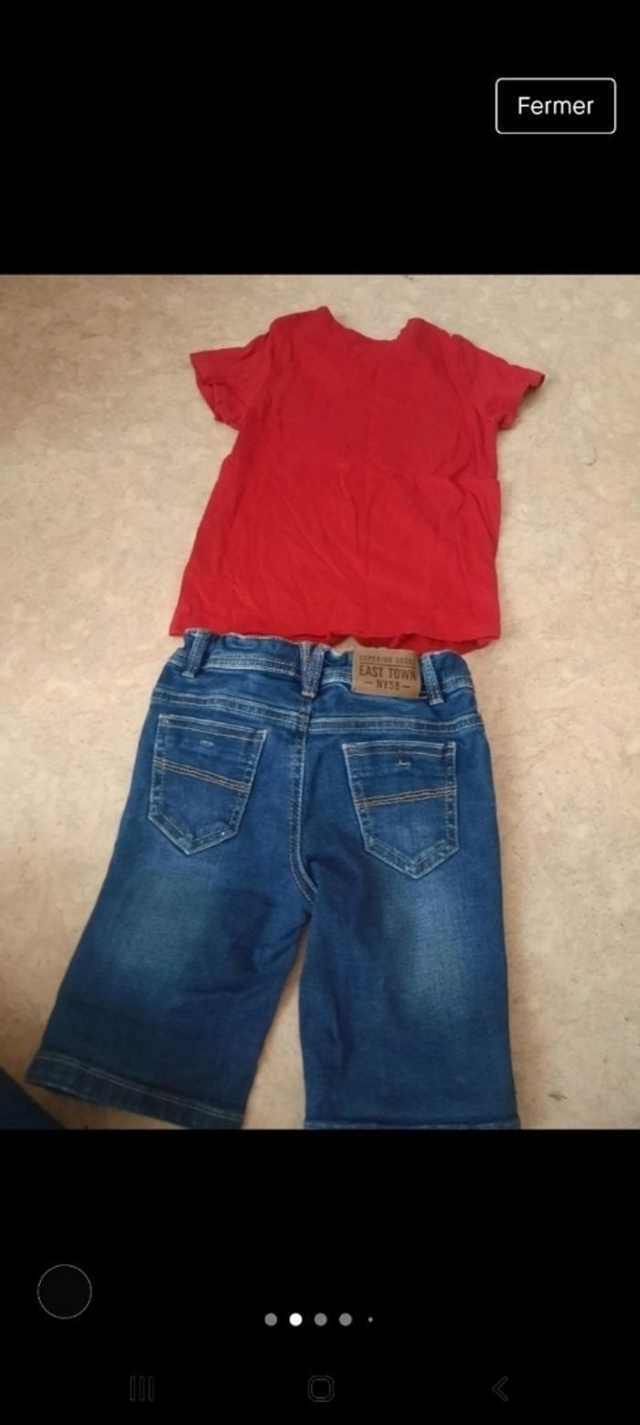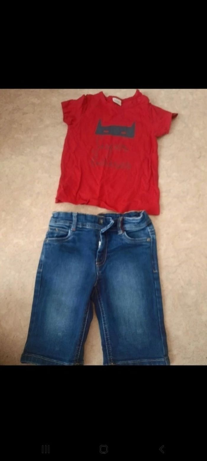 Ensemble Tape à l'œil. Tee shirt et pantacourt en jean. Taille 3 ans. Très bon état. Élastiques à la taille.
