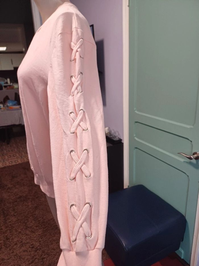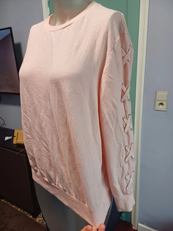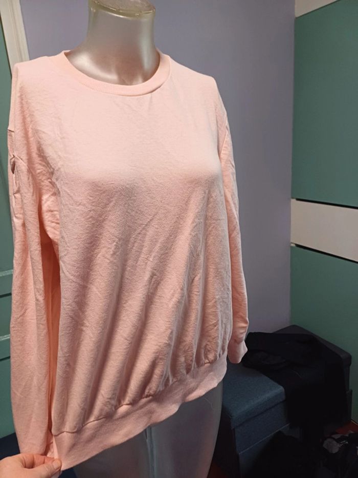 Pull rose pâle Taille L TQF Largeur epaule 45 cm Largeur aisselle à aisselle 57 cm Longeur 62 cm